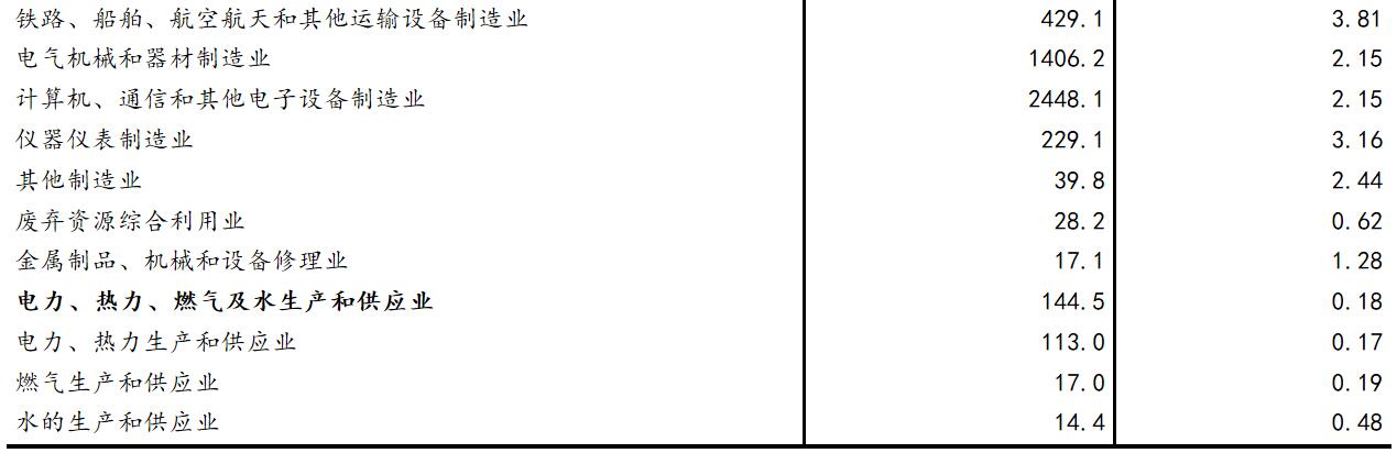 分產(chǎn)業(yè)部門來(lái)看,高技術(shù)制造業(yè)研究與試驗(yàn)發(fā)展(R&D)經(jīng)費(fèi)3804.0億元,投入強(qiáng)度(與營(yíng)業(yè)收入之比)為2.41%;裝備制造業(yè)研究與試驗(yàn)發(fā)展(R&D)經(jīng)費(fèi)7868.0億元,投入強(qiáng)度為2.07%。