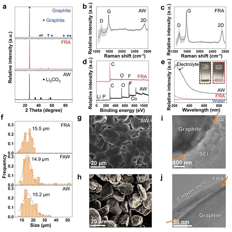 圖4. 閃熱回收石墨負(fù)極的表征。圖片來源:Adv. Mater.