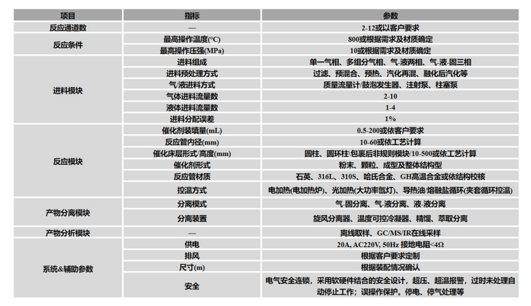 模塊化:桌面小型模塊化,根據(jù)實(shí)驗(yàn)體系自由組裝、擴(kuò)展及改進(jìn); 精確性:壓力±0.25%F.S,流量± 1%F.S,恒溫區(qū)溫差±1°C,各通道間溫差±1°C,控溫精度±0.1°C; 適用性:可實(shí)現(xiàn)多氣相、氣-液兩相和氣-液-固三相反應(yīng),并能與GC/MS/IR等聯(lián)用實(shí)現(xiàn)在線檢測(cè); 便捷性:溫度采用PID控制,確保反應(yīng)溫度穩(wěn)定,可恒定輸出以考察反應(yīng)熱量變化。數(shù)據(jù)采集及控制集成在觸摸屏,操作界面簡(jiǎn)潔友好,使用方便快捷。可實(shí)現(xiàn)產(chǎn)物自動(dòng)取樣分析,實(shí)現(xiàn)全天候連續(xù)運(yùn)轉(zhuǎn),無須人工干預(yù); 安全性:電氣安全連鎖,采用軟硬件結(jié)合的安全設(shè)計(jì),超壓、超溫 報(bào)警,過時(shí)未處理自動(dòng)停止工作;誤操作保護(hù);停電、停氣處理等。