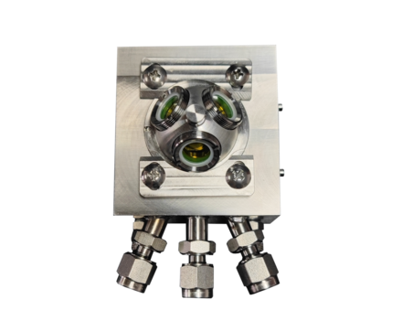 3、反應(yīng)池腔帽有三個窗口,其中兩個為紅外窗口,另一個為石英窗口,用于引入外部光源(光催化激發(fā)光源)或作為觀察窗口使用;